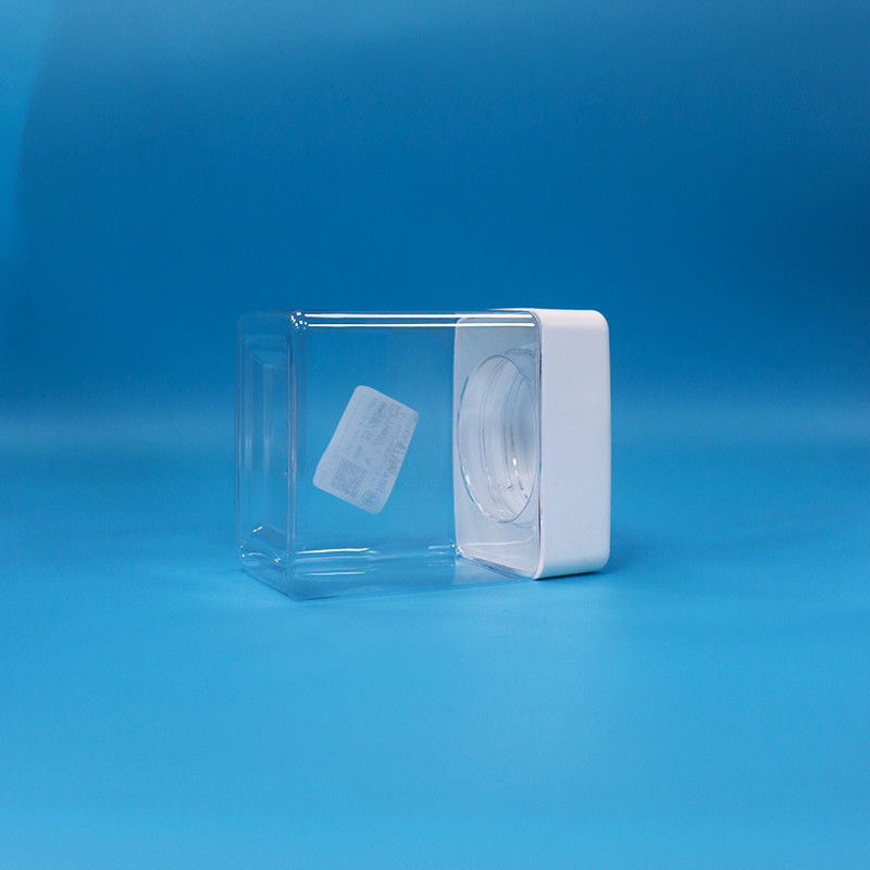 Transparência PET doces snack plástico de qualidade alimentar frascos quadrados parafusos tampa superior