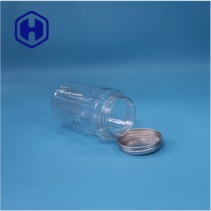 Garrafa transparente de plástico PET redondo Minte doces açúcar de grau alimentício Alumínio tampa superior