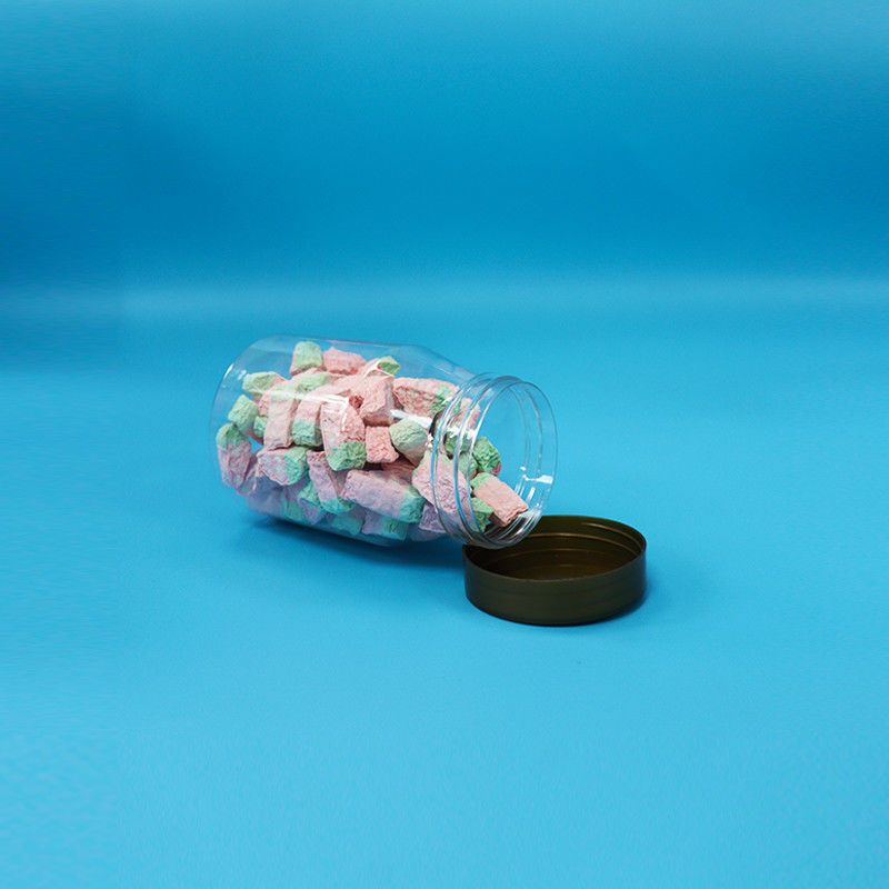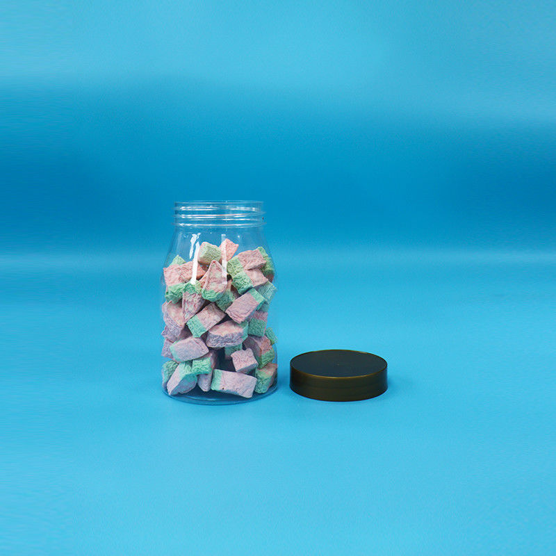 Carregamento redondo de boca larga Biscoitos doces Alimentos transparentes PET Jar de plástico Torno Cap
