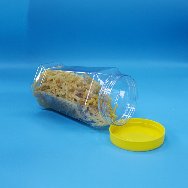 Garrafa de PET transparente de forma hexagonal de qualidade alimentar Biscoitos doces Alimentos