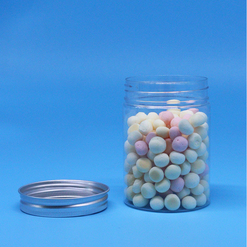 PET vazio de qualidade alimentar cilindro de alimentos redondo doces transparente frasco parafuso tampa plana
