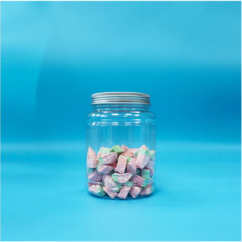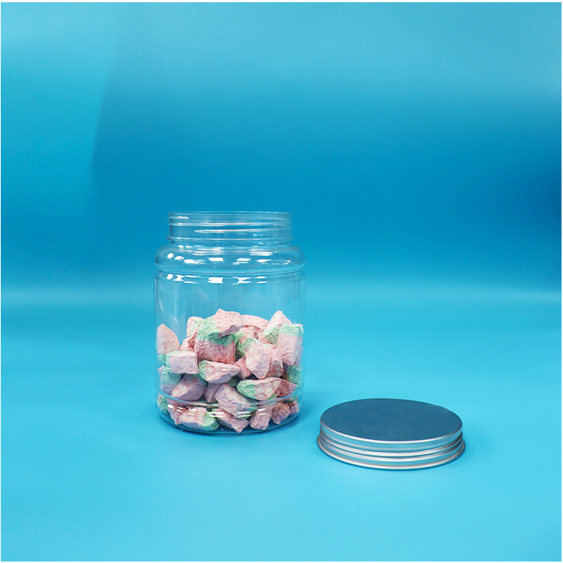 Aluminum Top Screw Flat Lid Transparent Plastic Fruit Jelly Lollipop Chewing Gum Jar