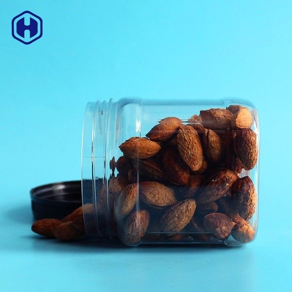 Os frascos plásticos da boca larga quadrada clara esvaziam as porcas secadas enlatadas que empacotam recipientes