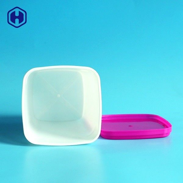 A cubeta quadrada branca plástica PP dos recipientes 23OZ de produto comestível 690ML cobre caixas do tampão
