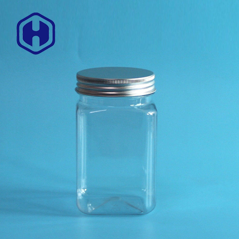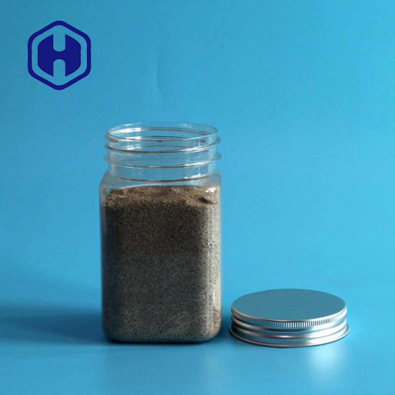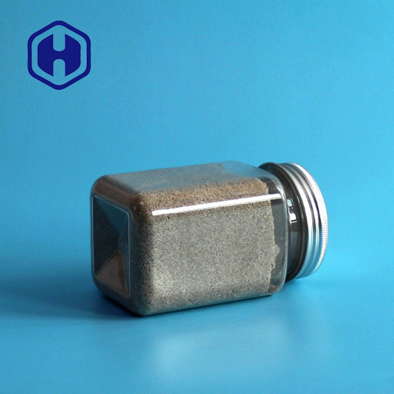 Frasco plástico do alimento do ANIMAL DE ESTIMAÇÃO vazio largo do quadrado do petisco 375ml da especiaria da boca com tampão de alumínio
