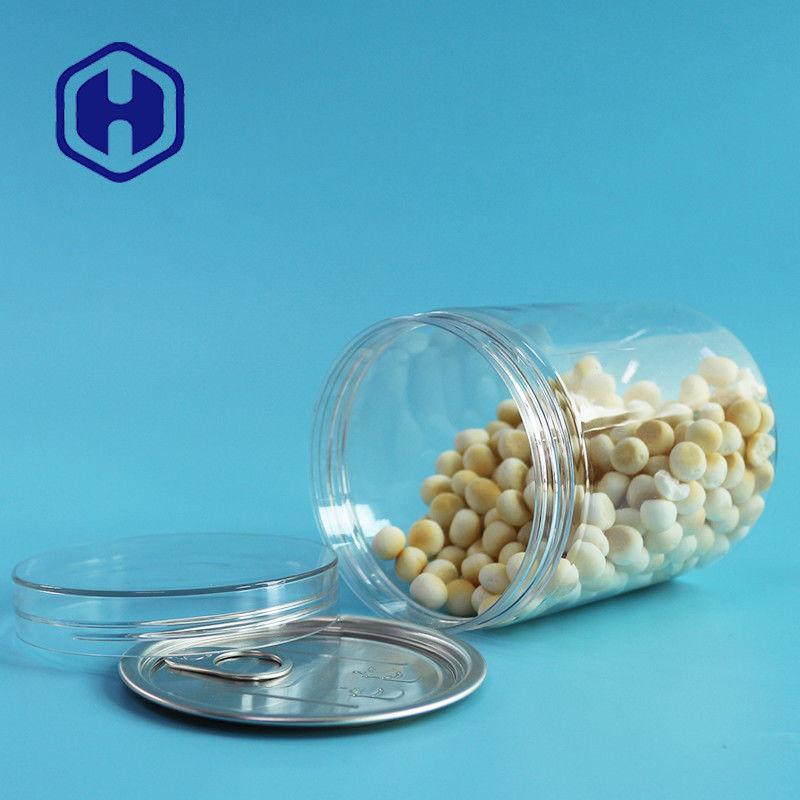 lata plástica de empacotamento enlatada transparente dos alimentos para animais de estimação da pastilha elástica do petisco de 305# 500ml com a extremidade aberta fácil da tampa do parafuso
